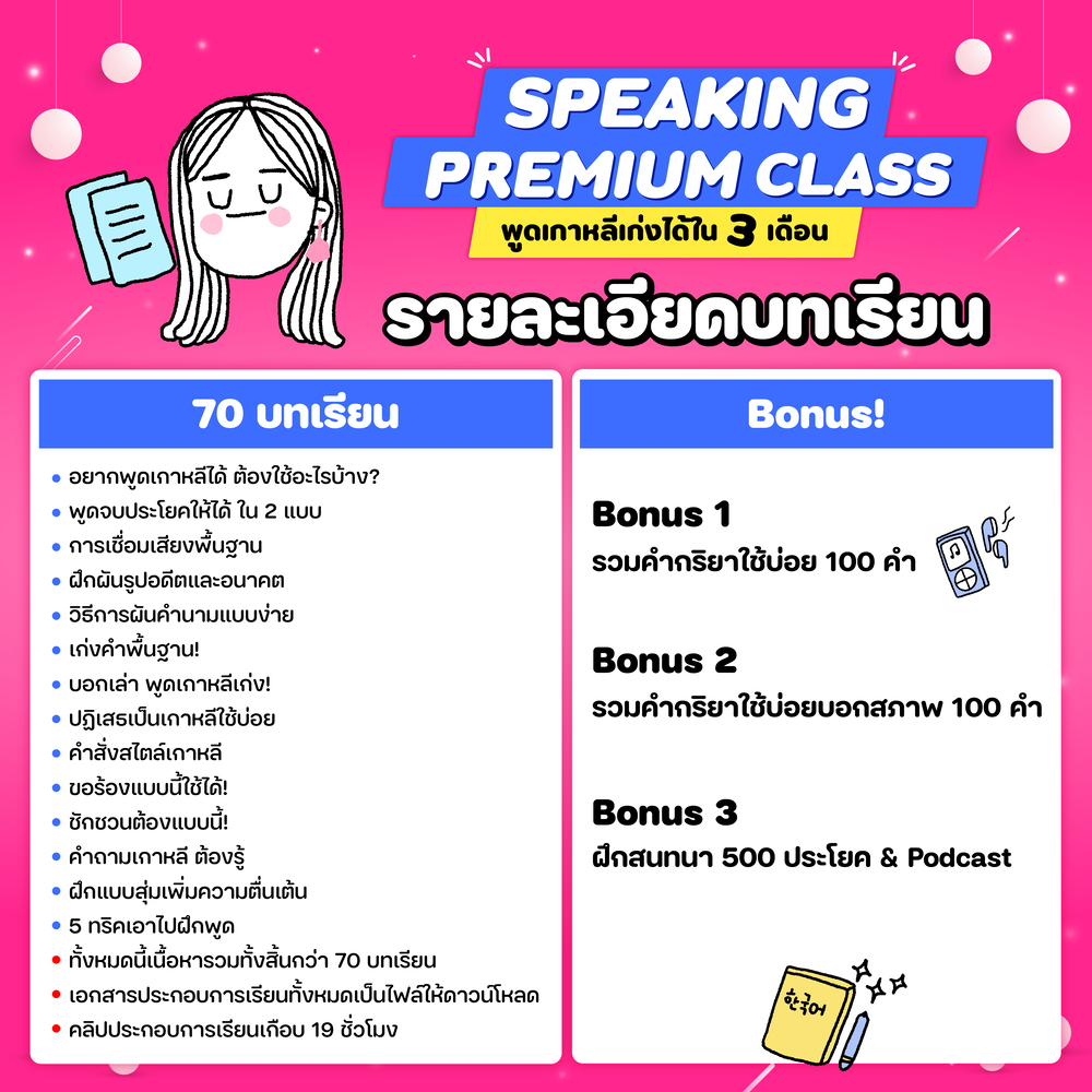 ✨เสริมด้วย SPEAKING PREMIUM CLASS⚡️พูดเกาหลีเก่งได้ใน 3 เดือน‼️