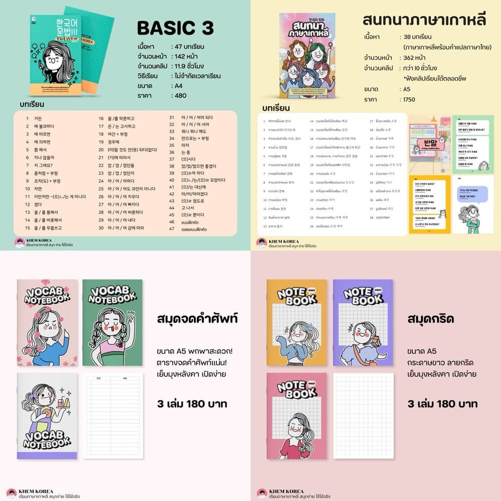 ⚡️เซ็ตที่เขมแนะนำ BOOKSET + PREMIUM CLASS ✨เซ็ตนี้คลิปประกอบเรียนกับเขมเซ็ตหนังสือ + พรีเมียมคลาส ทั้งหมดรวมประมาณ 89 ชั่วโมง ✅เหมาะกับผู้ที่ต้องการเรียนรู้ภาษาเกาหลีตั้งแต่เริ่มต้นให้สามารถพูดภาษาเกาหลีได้แบบเจ้าของภาษา เนื้อหาครอบคลุมครบถ้วนตั้งแต่การอ่านการเขียน การออกเสียง ให้สามารถสร้างประโยคเพื่อสนทนาด้วยตนเองได้ ฟังเข้าใจตอบโต้กลับได้อย่างคล่องแคล่ว ✅เสริมด้วยสปีคกิ้งพรีเมียมคลาสเพราะเข้าใจปัญหาของผู้เรียนที่ต้องการจะสนทนาเป็นภาษาเกาหลีให้ได้ เรารู้ว่าต้องฝึกอย่างไรถึงได้ผล เขมจัดเนื้อหาพร้อมแบบฝึกแน่นๆ ให้ฝึกพูดแบบเริ่ดๆเลยค่ะ